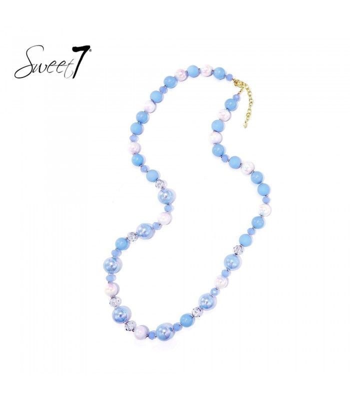 Hoe voeg je kleur en zachtheid toe aan je look zonder te overdrijven? Deze halsketting combineert glanzende lichtblauwe kralen met witte accenten en transparante tussenkralen. Een verfijnde mix die direct opvalt. Fris kleurenspel voor elke dag De zachte pasteltinten en ronde vormen maken deze fashion ketting ideaal voor een luchtige, vrouwelijke outfit. Draag solo of combineer met andere sieraden voor een gelaagd effect.