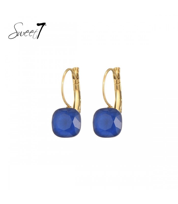 Blauwe oorhanger met facetgeslepen steen met een goudkleurig klaphaak