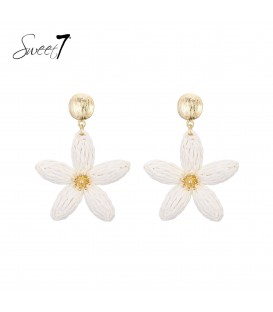 Oorbellen Hoe vang je de charme van een zonovergoten dag in een sieraad? Deze bloemvormige oorbellen doen precies dat. Met hun zachte, ivoorwitte vlechtwerk en gouden hartje stralen ze pure frisheid en elegantie uit. De ronde, goudkleurige knop zorgt voor een chique basis, perfect in balans met het speelse bloemdetail.