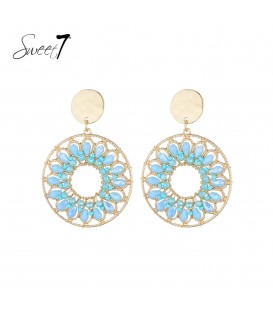 Oorbellen met blauwe stenen en goudkleurige open cirkel