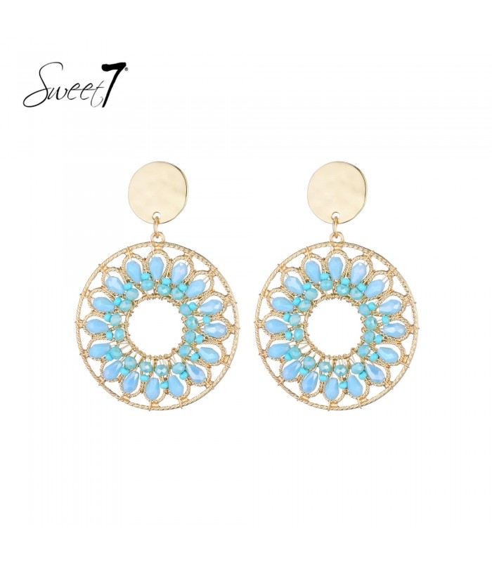 Oorbellen met blauwe stenen. Zoek je een oorbel die direct een zomerse touch geeft? Deze oorbellen combineren goudkleur met helderblauwe stenen in een open cirkel. De speelse vorm en kleur maken deze statement oorbellen perfect voor een frisse, trendy look.