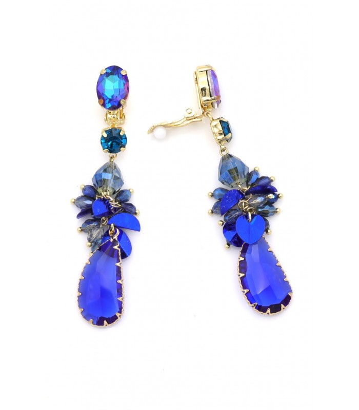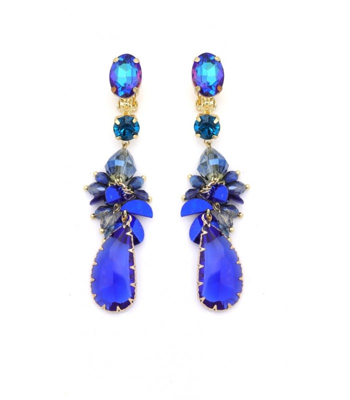 Chic met een vleugje drama De mix van glanzende kralen, bloemblaadjes en een royale druppelvormige steen geeft deze oorclips een dynamische, bijna bloemachtige compositie. Fashion liefhebbers zullen de combinatie van helderblauw waarderen de trendkleuren in sieraden. Perfect voor wie durft op te vallen.