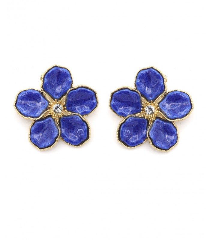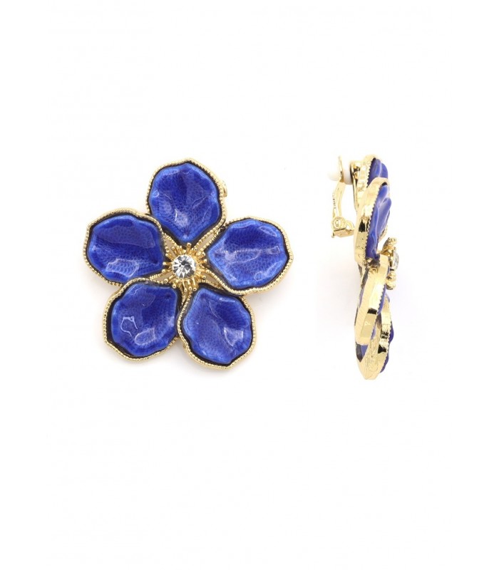 Moderne blauwe oorclips in bloem vorm met een goudkleurige afwerking