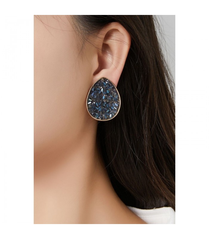 Hoe laat je een donkere kleur toch schitteren? Deze oorclip doet het met gemak. De diepblauwe steentjes vangen elk straaltje licht en zorgen voor een sprankelend effect, terwijl de druppelvorm je look verfijnt en krachtig houdt.