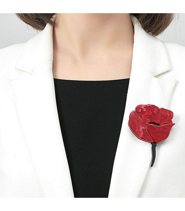 Deze prachtige broche in de vorm van een rode roos is een ware eyecatcher. De gedetailleerde afwerking van de bloembladen in een diepe rode kleur straalt romantiek en elegantie uit. Het subtiele glans van de roos geeft elke outfit een verfijnde en charmante touch, perfect voor zowel formele als casual gelegenheden. Deze broche is ideaal om een jas, sjaal of blouse mee te verfraaien en maakt je look compleet met een vleugje klassieke stijl.