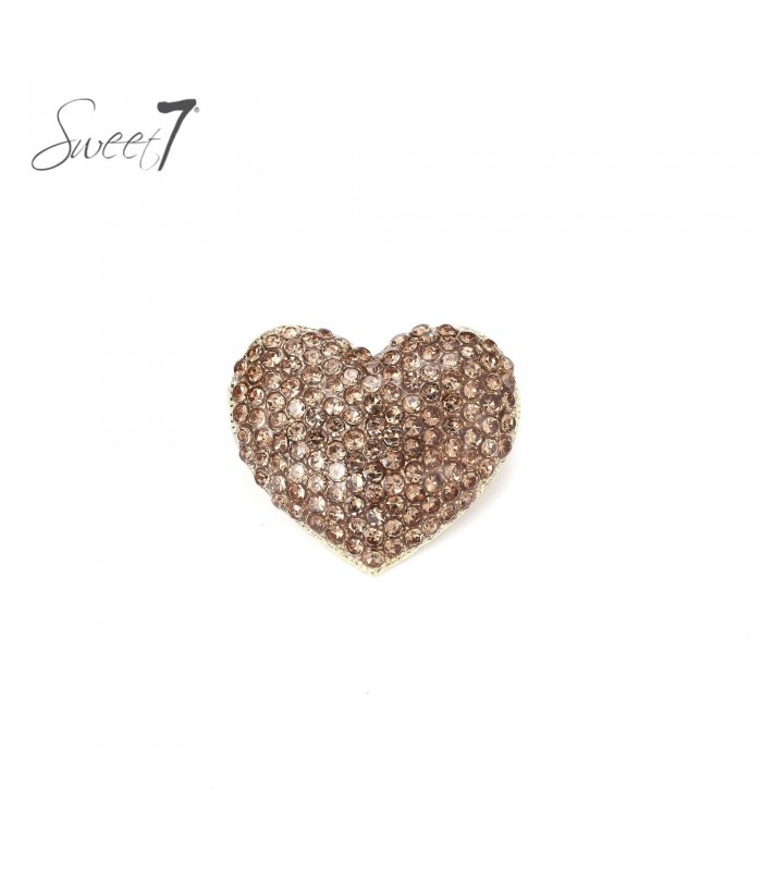Hoe geef je elke outfit een vleugje romantiek en glamour? Deze hartvormige broche van Sweet7 doet precies dat. Volledig bezet met bruine steentjes straalt hij warmte en luxe uit. Ideaal voor feestelijke gelegenheden of als stijlvol detail op een jas of blouse. Tijdloos en elegant De zachte glans van de kristallen geeft deze broche een verfijnde uitstraling. Het hartdesign blijft een modeklassieker en maakt dit accessoire perfect als subtiele eyecatcher. Draag hem solo of combineer met andere sieraden voor extra impact.