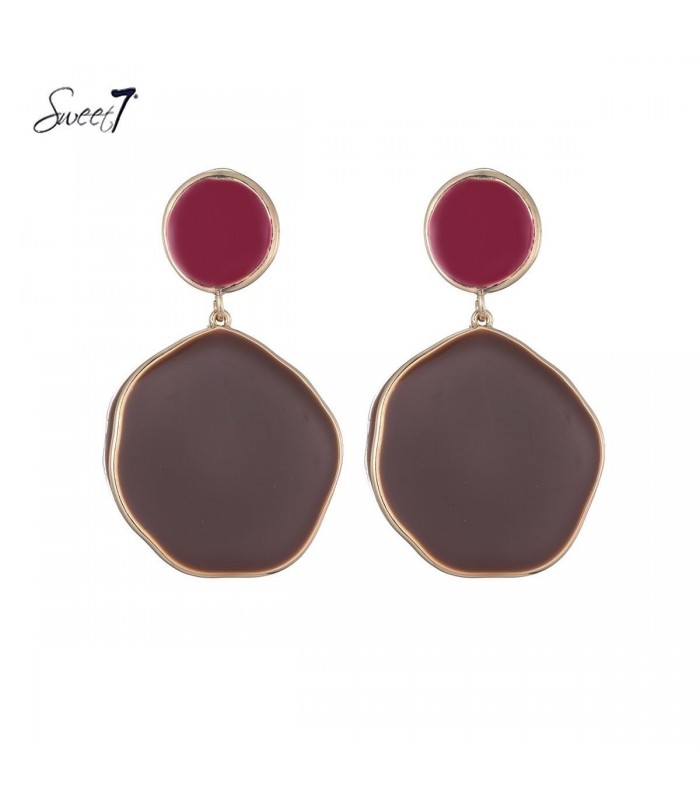 Oorbellen met grafische vorm. Deze oorbel combineert een ronde bordeaux top met een grote organische hanger in warm bruin. De oorbellen creeren een moderne look. Perfect als statement oorbellen of trendy dames oorbellen bij een minimale outfit.