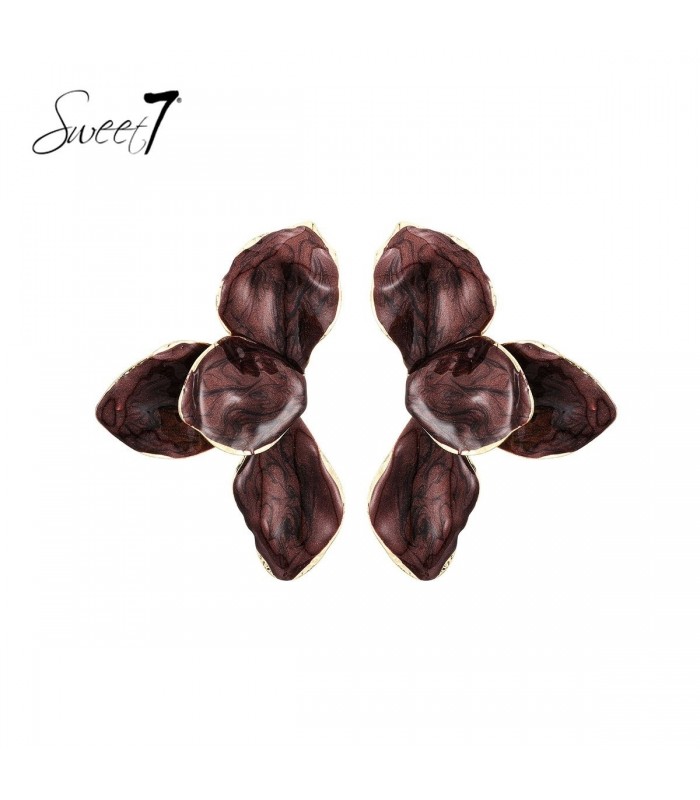 Wil je iets dat echt anders is? Deze oorbellen in diepe bruin tint met bloemvormig design trekken direct de aandacht. De glanzende, gemarmerde blaadjes omlijst met goud geven een luxueuze uitstraling en maken dit item tot een statement piece dat je look versterkt. Oorbel met artistieke uitstraling De organische vorm en de rijke kleur maken deze oorbellen perfect voor een avondje uit of voor overdag. Toch uitgesproken ideaal voor wie durft op te vallen met stijlvolle fashion oorbellen.