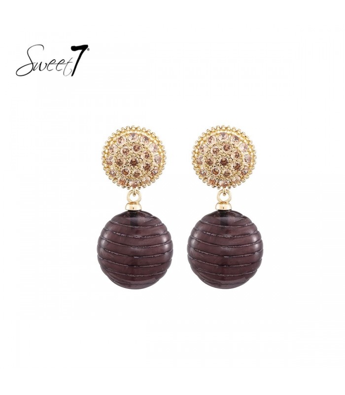 Oorbellen bruin met fonkelende steentjes en bolvormige hanger