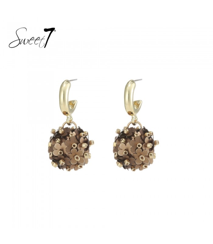 Hoe voeg je een speels accent toe aan je look zonder over de top te gaan? Deze oorbel combineert een glanzende goudkleurige ring met een hangende bol, opgebouwd uit kleine bloemvormige elementen in bruin en goudtinten. Een subtiel statement met karakter. Lichtgewicht en modieus Deze oorbel is perfect voor dagelijks gebruik dankzij het comfortabele design. De nikkelvrije afwerking en modieuze vorm maken dit een trendy accessoire voor elke stijl.