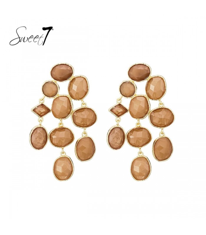 Wil je opvallen zonder te overdrijven? Deze oorbellen combineren warme bruintinten met een speelse, gelaagde vorm. De gefacetteerde stenen vangen het licht subtiel en zorgen voor een elegante glans. Perfect bij zowel een dagelijkse look als een chique avondoutfit.