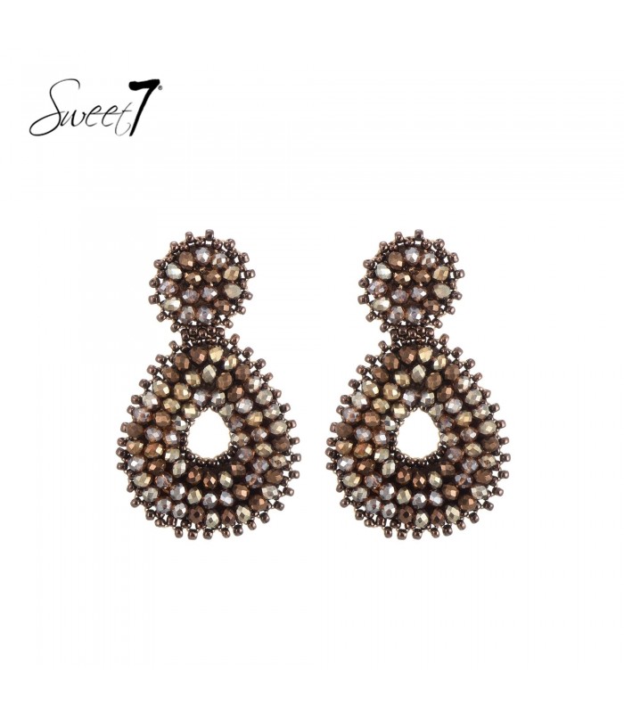 Oorbellen bruin met glinsterende glas kralen in druppelvorm