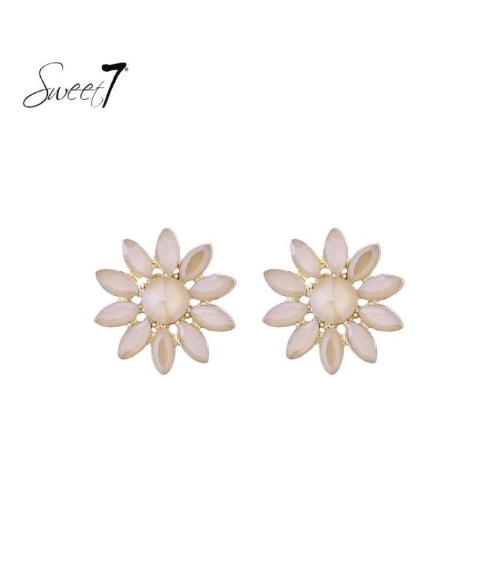 Op zoek naar oorbellen die opvallen zonder te overdrijven? Deze bloemvormige oorbellen van Sweet7 combineren zachte pasteltinten met een verfijnde gouden afwerking. De bloemblaadjes van facetgeslepen steentjes zorgen voor een subtiele sparkle. Ideaal voor een romantische of Chique look.