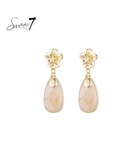 Oorbellen met goudkleurig bloemdetail en beige hanger