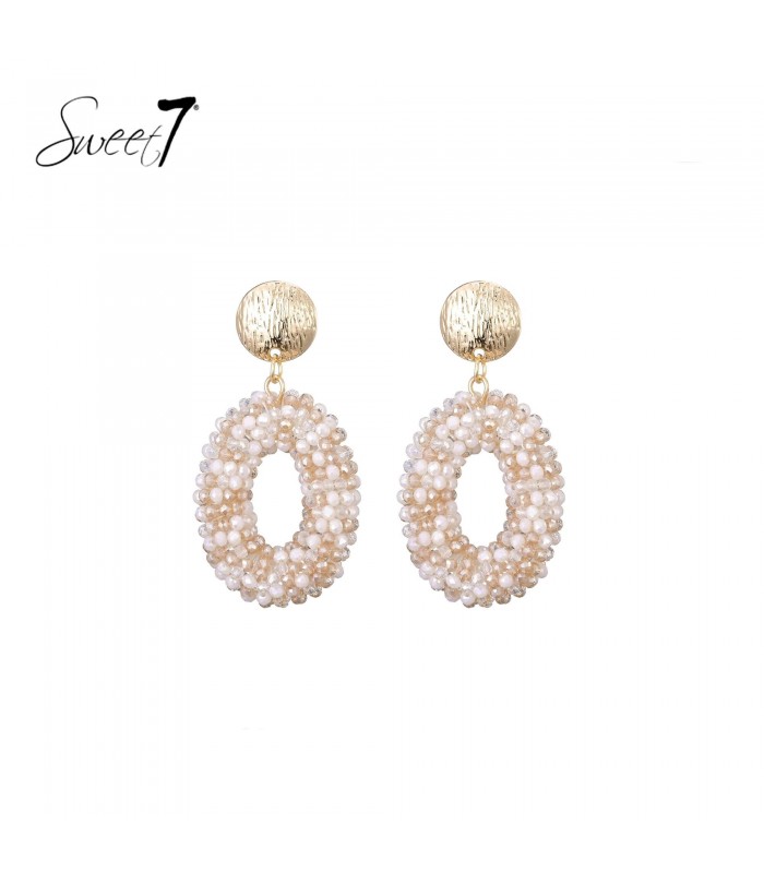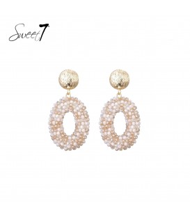 Beige met witte glas kralen en een goudkleurig oor stukje
