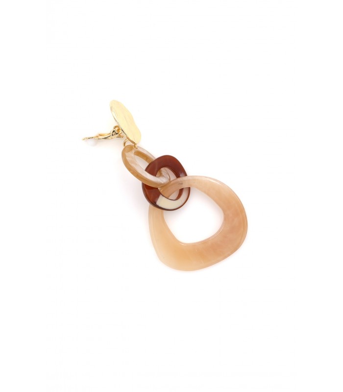 Mix van materialen en comfort De glanzende goudkleurige clip sluit comfortabel dankzij zachte rubbertjes, terwijl de kunststof schakels licht aanvoelen. Perfect voor wie geen gaatjes heeft, maar wel houdt van eigentijdse statement oorbellen.