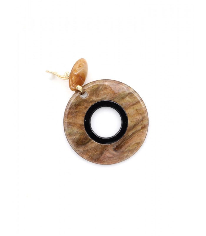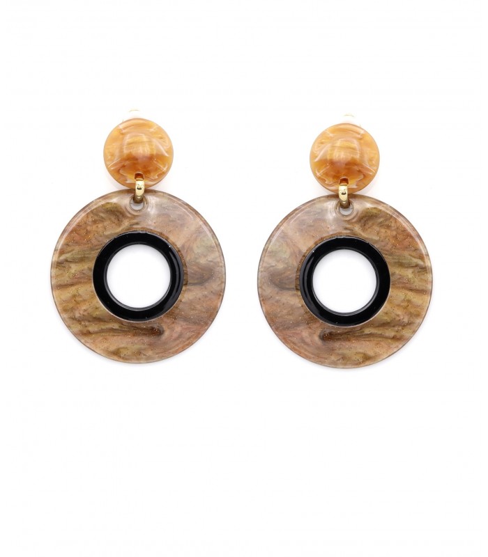 Oorclips met ronde vormen en aardetinten. Hoe combineer je comfort met stijl? Deze oorclips vallen op door hun speelse ronde vorm en natuurlijke kleuren. De mix van karamelbruin, zwart en marmerpatroon geeft een organisch maar krachtig effect, perfect voor een stijlvolle, eigentijdse look. Oorclips met karakter en draaggemak Dankzij het lichte materiaal en de zachte rubbertjes zijn deze oorclips ideaal voor langdurig dragen. Het contrasterende zwarte midden maakt het design grafisch sterk en makkelijk te combineren met basic outfits.