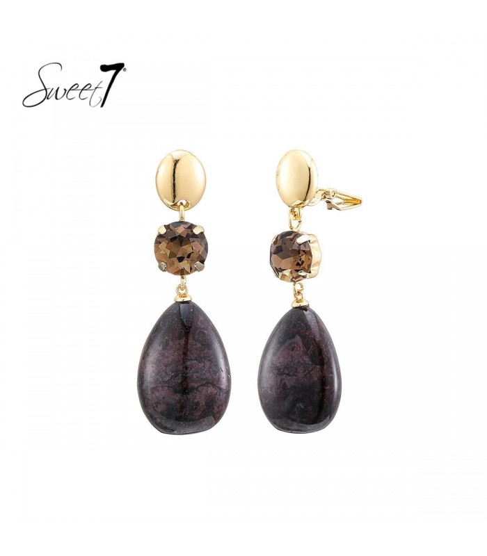 Oorclips bruin elegante hanger in druppelstijl en steentje