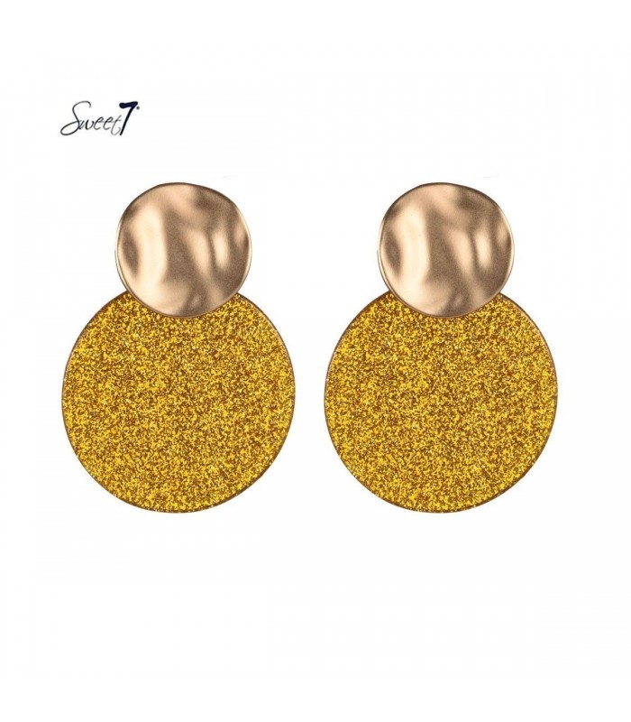 Oorbellen met goudkleurige details en glinsterende gele accenten.