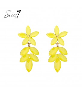 Oorbellen geel met bladvormige steeentjes
