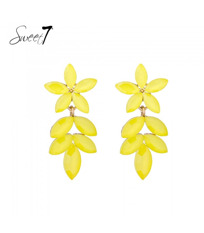 Zon in je look. Op zoek naar oorbellen die direct vrolijkheid uitstralen? Deze gele oorbellen met bloemblaadjes in bladvorm brengen licht en leven in elke outfit. De combinatie van sprankelend geel en goudkleurige accenten zorgt voor een opvallende, zomerse uitstraling.