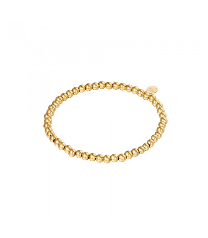 Goudkleurige armband van middelgrote kralen. Heb je een feestje, een bruiloft of wil je gewoon jezelf verwennen? Yehwang is een modern, hip en eigentijds sieraden merk. Veel glitter, zilver en goud met vaak een uitstekende afwerking zoals gold plating of Rhodium en gemaakt van roestvast staal. Hierdoor krijgen de armbanden niet alleen een hippe uitstraling, maar zijn ze ook gemaakt van kwalitatief, hoogwaardig materiaal. De armband is nikkelvrij.