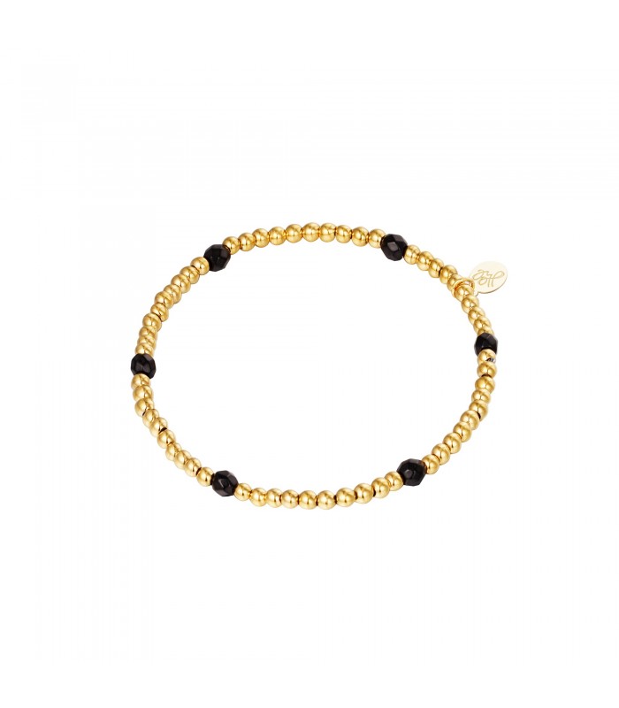 Schattig armbandje met gouden en enkele zwarte kraaltjes. Dit armbandje is de perfecte musthave en past bij elke look! Het armbandje is gemaakt van Stainless Steel en steentjes. Het armbandje heeft een afmeting van 17 cm en is dankzij het elastiek perfect te dragen.