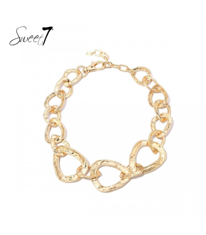 Bold design met speelse elegantie. Zin in een opvallend accessoire dat elke basic outfit transformeert? Deze halsketting met grote schakels in organische vormen heeft een luxe gehamerde afwerking. De glanzende goudkleur maakt dit sieraad tot een echte fashion statement voor zowel dag als avondlooks.