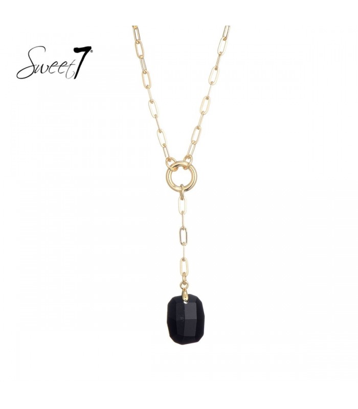 Hoe combineer je elegantie met eenvoud? Deze halsketting doet het moeiteloos. De goudkleurige schakelketting met ronde sluitring vormt een stijlvol geheel met de diepzwarte facetsteen. Een verfijnde eyecatcher voor elke gelegenheid. Perfect voor layering of solo De ketting valt subtiel op door de verticale lijn en de glanzende afwerking van de zwarte steen. Ideaal als solo accessoire bij een open hals of als basis laag in een layered necklace look. Combineert perfect met goudkleurige oorbellen of een zwarte outfit.