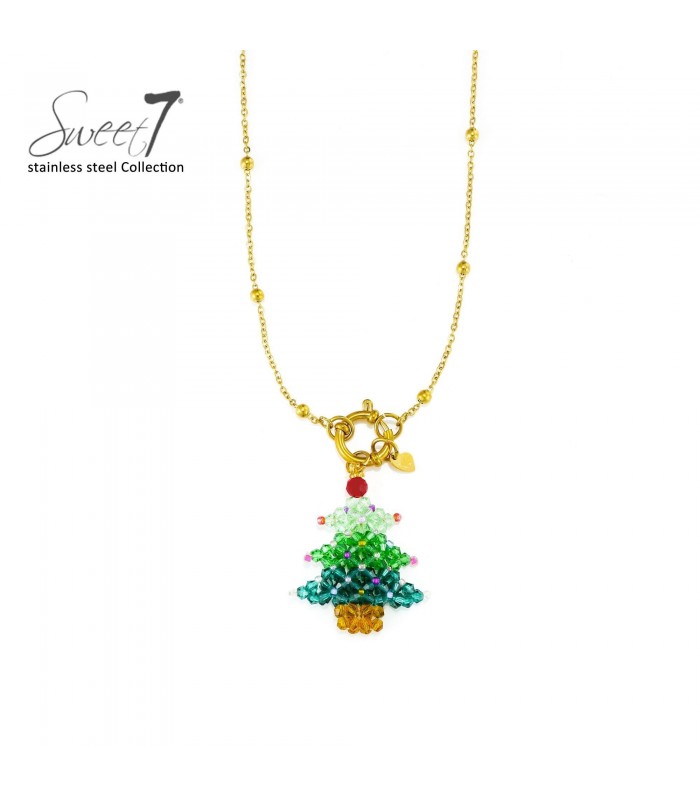 Op zoek naar een subtiele maar feestelijke touch? Deze gouden ketting met kralenhanger in de vorm van een kerstboom brengt instant kerstsfeer. De hanger is opgebouwd uit fonkelende kristalkralen in groen, rood en goud, voor een sprankelend effect bij elk licht. Ketting voor de feestdagen De fijne stainless steel schakelketting met speelse bolletjes geeft dit sieraad een moderne en verfijnde uitstraling. Perfect te combineren met feestkleding of als kleurrijk accent op een eenvoudige outfit. Een must have accessoire voor december.