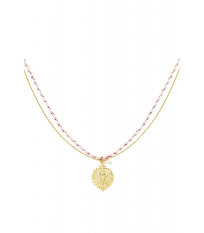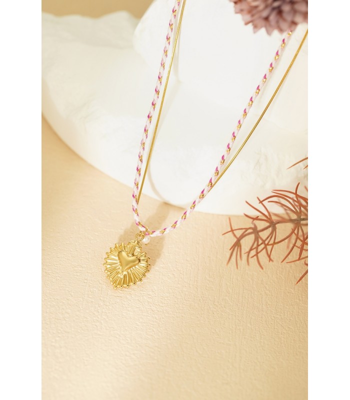 Deze goudkleurige halsketting is voorzien van een charmante hartvormige bedel, wat een romantisch accent toevoegt aan je outfit. Het subtiele ontwerp maakt het geschikt voor zowel dagelijkse draagmomenten als speciale gelegenheden. Deze ketting heeft een verlengkettinkje van 5 cm, waardoor je de lengte kunt aanpassen voor de perfecte pasvorm. Voeg deze elegante ketting toe aan je sieradencollectie en geef je look een verfijnde touch.