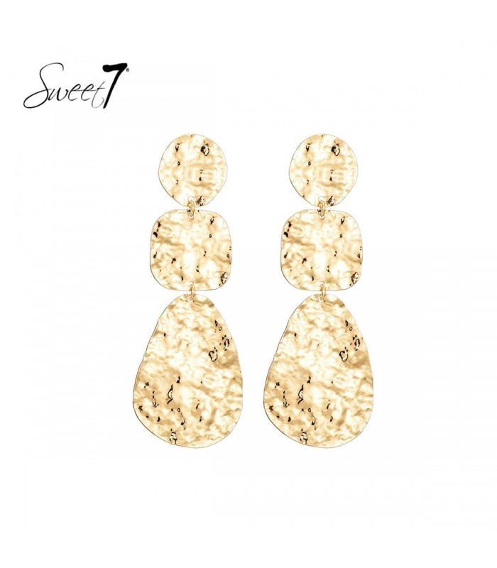 Mag een oorbel je look versterken zonder te overheersen? Deze oorbel bestaat uit drie gehamerde gouden elementen in verschillende organische vormen. Het glanzende oppervlak vangt het licht prachtig en geeft jouw outfit een modieuze, luxe uitstraling. Trendy statement voor elke gelegenheid Deze oorbellen passen perfect binnen de trends. Het gehamerde design geeft een artistiek accent dat zowel bij een casual outfit als bij een avondlook past. Een stijlvolle keuze die altijd opvalt.