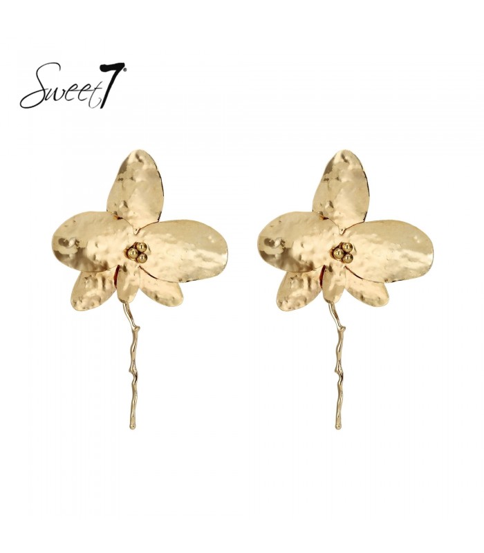 Goudkleurige bloemen oorbellen met een gehamerd motief