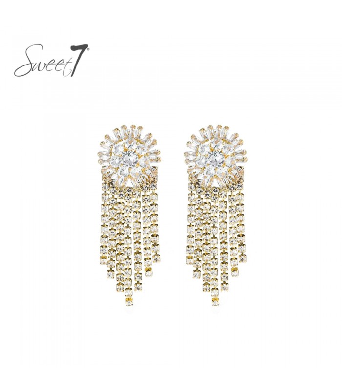 Oorbellen met steentjes en franjes Wil je direct impact maken met je look? Deze glinsterende oorbellen trekken gegarandeerd de aandacht. De combinatie van een fonkelend kristallen bloemdesign met vallende steentjes geeft een luxe uitstraling. Perfect voor avondlooks en feestelijke gelegenheden. Deze statement oorbellen zijn een echte eyecatcher. Oorbellen voor een glamoureuze stijl De gouden basis en sprankelende afwerking maken deze oorbellen tot een must have voor elke sieradenliefhebber. Ze passen moeiteloos bij een elegante outfit en geven extra flair aan een basic look. Ideaal voor wie houdt van opvallende fashion accessoires.