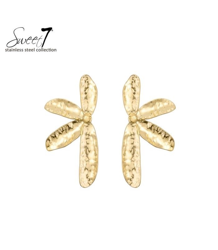 Strak en sculpturaal. Wat gebeurt er als minimalisme en design elkaar ontmoeten? Deze goudkleurige oorbellen zijn het antwoord. Met hun asymmetrische bloemvorm en gehamerde textuur stralen ze moderne elegantie uit. Perfect voor wie houdt van een krachtig sieraad met een artistieke uitstraling.