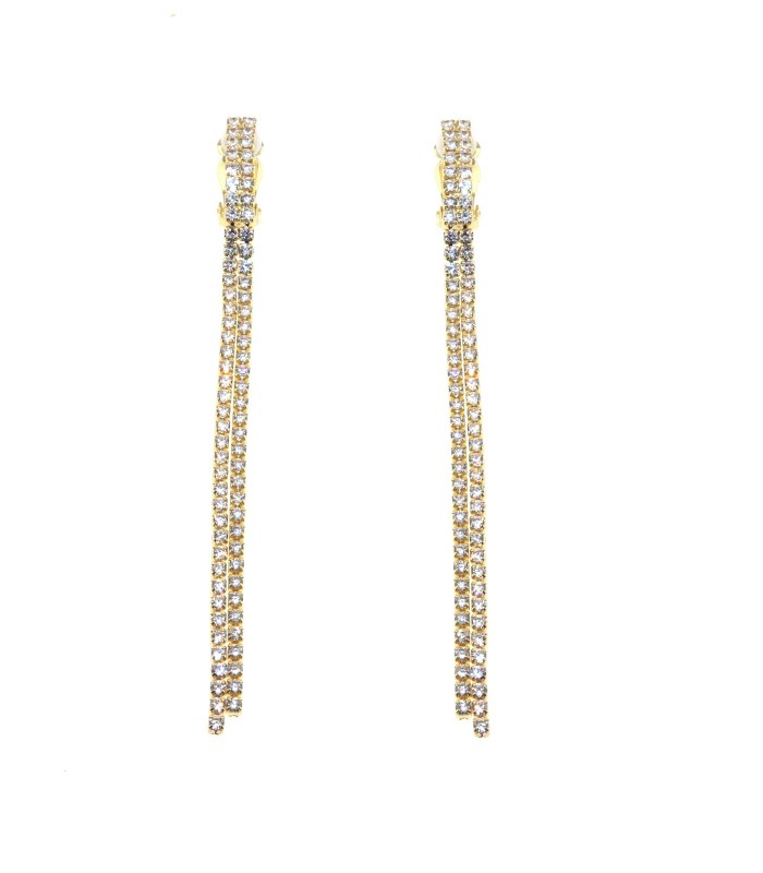 Deze goudkleurige oorclips zijn voorzien van fonkelende stras steentjes die bij elke beweging schitteren. Ze voegen een vleugje glamour toe aan zowel dagelijkse als feestelijke outfits. De klassieke uitstraling maakt ze een tijdloze aanvulling op uw sieradencollectie.