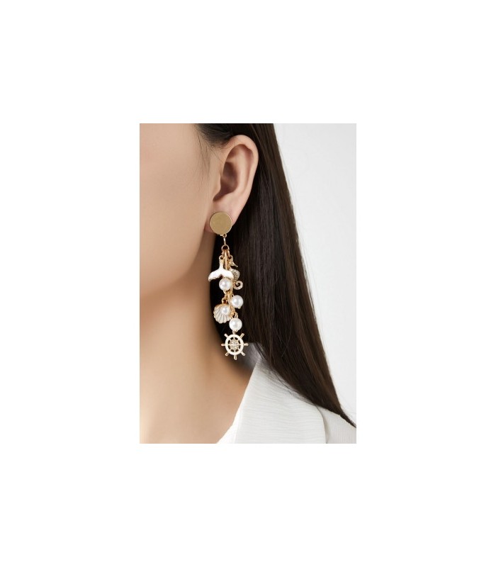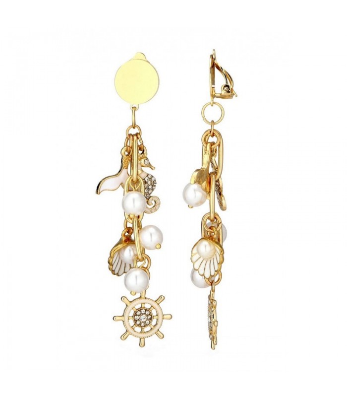 Wat maakt deze oorclips onweerstaanbaar? De mix van goudkleurige details, parels en maritieme bedels zoals een zeepaardje en schelp. Perfect bij een modieuze outfit of als opvallend accent bij een basic top. Licht en stijlvol design De hangende elementen geven de oorclips beweging en karakter, terwijl de zachte rubbertjes zorgen voor draagcomfort zonder gaatjes. Door het gebruik van parelelementen en goudkleur blijft het geheel chic en trendy. Combineer moeiteloos met andere fashion sieraden.