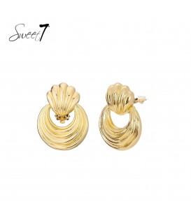 Goudkleur met karakter. De schelpvormige bovenkant geeft een subtiel maritiem accent, terwijl de gelaagde ringen zorgen voor een krachtige, tijdloze uitstraling. Ideaal voor een statement look zonder te overdrijven.
