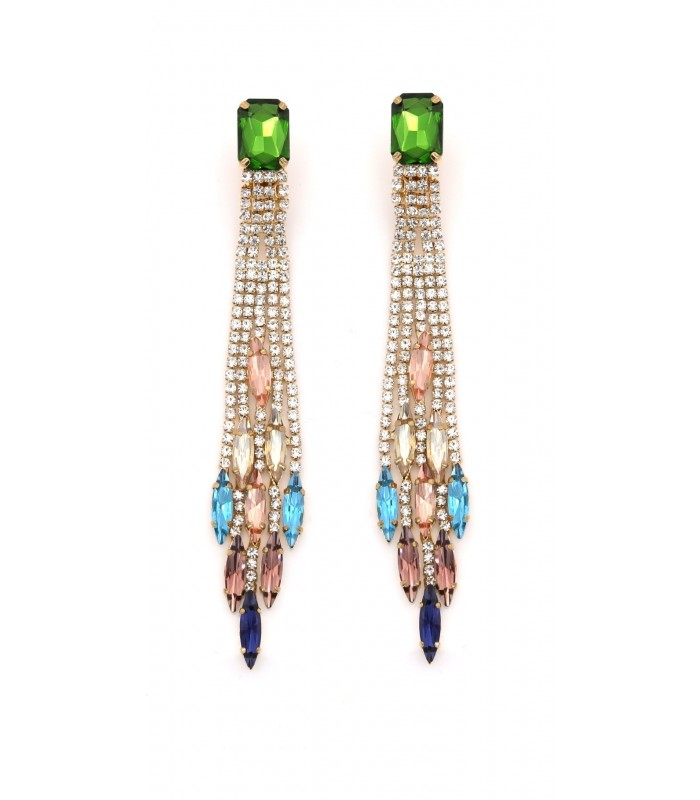 Oorclips lang groen met heldere strass steentjes en kleurrijke afwerking
