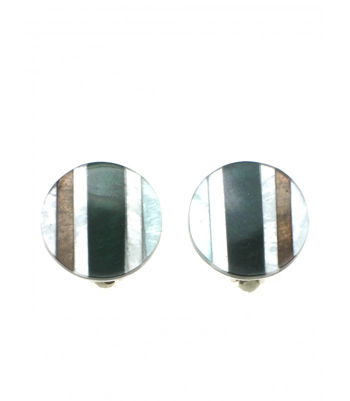 Wil je een oorbel die opvalt en makkelijk te combineren is? Deze ronde oorclips combineren glanzend parelmoer met diepe groentinten en neutrale banen. Het gestreepte patroon geeft een grafisch effect dat elke outfit een stijl boost geeft. Modern design, tijdloze kleuren De subtiele mix van groen, bruin en zilver kleur maakt deze oorbellen geschikt voor elke gelegenheid. Dankzij de comfortabele clipsluiting draag je ze moeiteloos de hele dag. Een perfecte balans tussen statement en eenvoud.