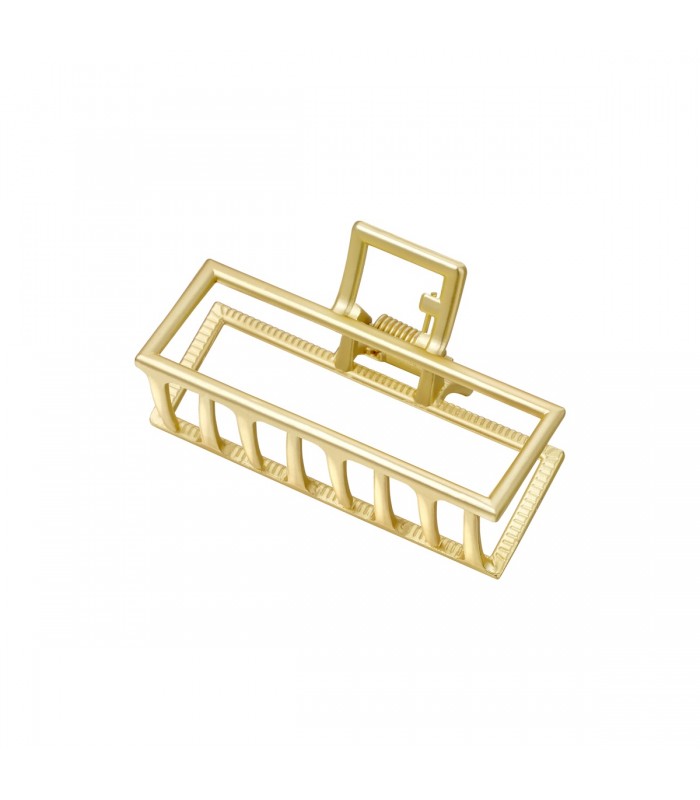 Goudkleurige rechthoekige metalen haarclip. De lengte van deze haarklem is 7 cm