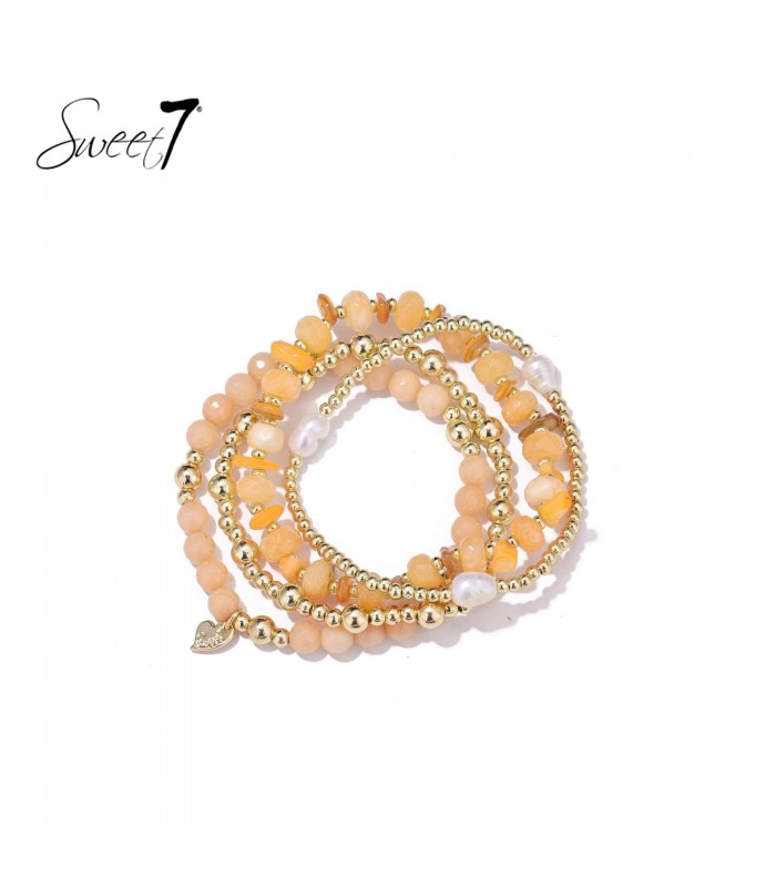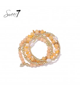 Armband met perzikkleurige kralen en meerdere strengen