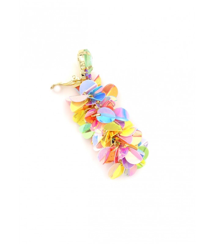 Wil je kleur, volume in een? Deze oorclips combineren iriserende schijfjes met paars, oranje een opvallend ontwerp. De glanzende accenten vangen elk straaltje licht. Een echte eyecatcher voor feestjes, festivals of een statement look.