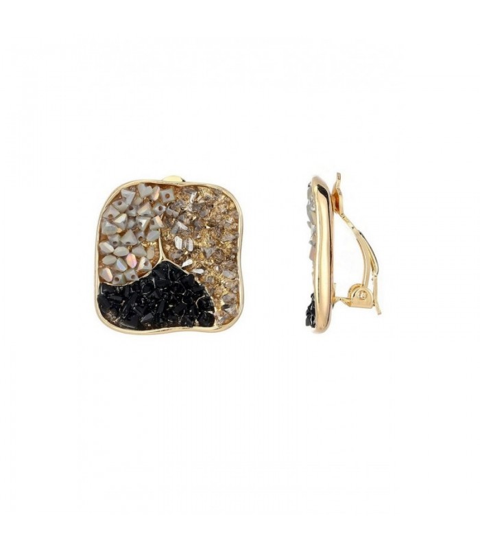 Zoek je oorclips met een luxe uitstraling en een krachtige mix van kleuren? Deze vierkante oorclips combineren zwart, taupe en parelmoertinten in een speels mozaiek. De gouden omlijsting maakt het geheel extra chic. Verfijnd met karakter De combinatie van glans, textuur en diepe kleuren maakt deze fashion oorclips een ideale keuze voor zowel overdag als s avonds. Comfortabel te dragen zonder oor gaatjes stijl en gemak komen hier perfect samen.