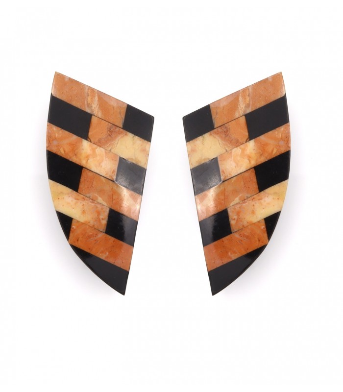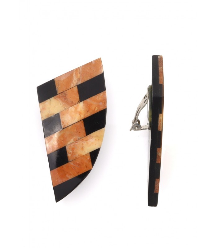 Oorclips met mozaiekpatroon in aardetinten en zwart
