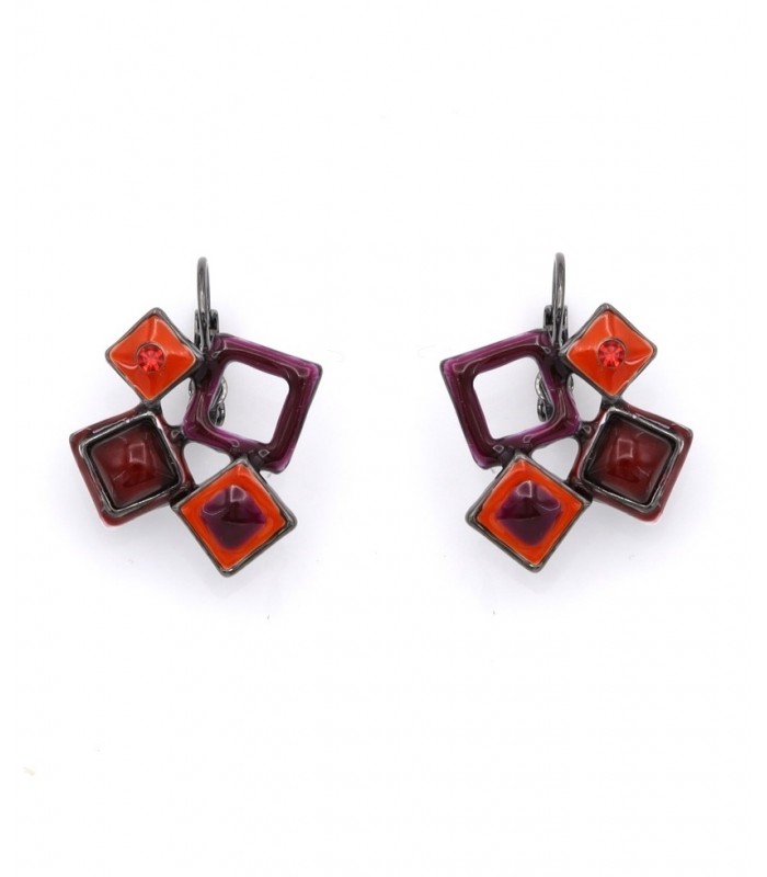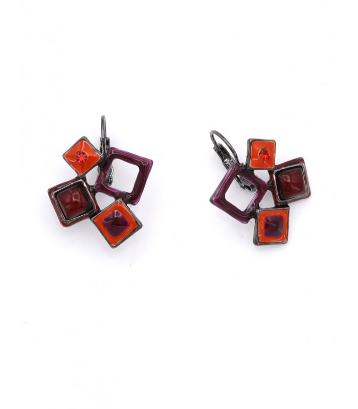 De unieke compositie van vierkante elementen in dieprood en oranje geeft deze oorbellen een moderne en speelse uitstraling. De glans van het emaille en de subtiele schittering van de rode steen zorgen voor een kunstzinnig geheel. Geometrisch en stijlvol De grafische vormen maken deze oorbellen tot echte eyecatchers. Of je ze nu draagt bij een minimalistische outfit of als accent bij kleur, ze zorgen altijd voor balans en contrast. Trendy, licht van gewicht en ideaal voor elke gelegenheid waar je jouw eigen stijl wilt laten spreken.