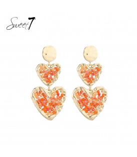 Zo krachtig en speels tegelijk? Het hartvormige design in goudkleur met levendige rode kralen straalt pure energie uit. De dubbele hartstructuur voegt beweging en volume toe, terwijl de warme tinten zorgen voor een frisse look. Deze oorbellen zijn er voor wie durft te stralen.