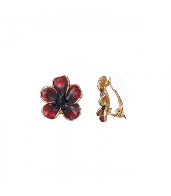Op zoek naar oorclips die je look een speelse maar elegante twist geven? Deze oorclip in bloemvorm combineert warme roodtinten met een goudkleurige omlijsting. Het zwarte kristal in het midden zorgt voor extra diepte en een chique accent. Comfort met een sierlijke uitstraling Deze bloem oorclips passen perfect binnen de fashion sieraden trend en zijn ideaal voor oren zonder gaatjes. De zachte rubber pads maken ze comfortabel om te dragen, terwijl het bloemdesign zorgt voor een vrouwelijke, stijlvolle look.