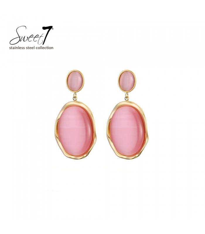 Roze oorbellen. Wil je een oorbel die direct luxe uitstraalt? Deze oorbellen met ovale roze steen in goudkleurige zetting geven jouw look een elegante touch. De glanzende afwerking en zachte kleur maken deze dames oorbellen perfect voor een chique en moderne stijl.