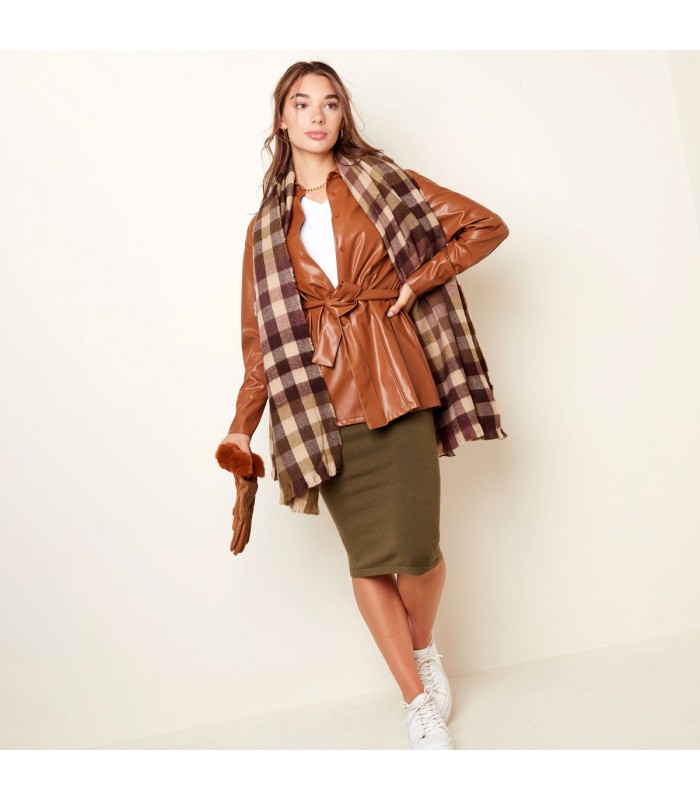 Ben je op zoek naar een sjaal die past bij iedere outfit? Dan is deze sjaal perfect voor het komende winter seizoen. Niet alleen de sjaal zelf is erg warm maar ook de verschillende kleuren namelijk bruin beige en groen. Het materiaal waar de sjaal van gemaakt is is acryl. Dit maakt de sjaal niet alleen warm maar laat het ook aanvoelen als een fijne stof om te dragen. Het patroon van de sjaal is geblokt en heeft een afmeting van 2 meter x 80 cm. Lekker groot en perfect om lekker om je heen te slaan tijdens een middagje terrassen met een warm drankje.